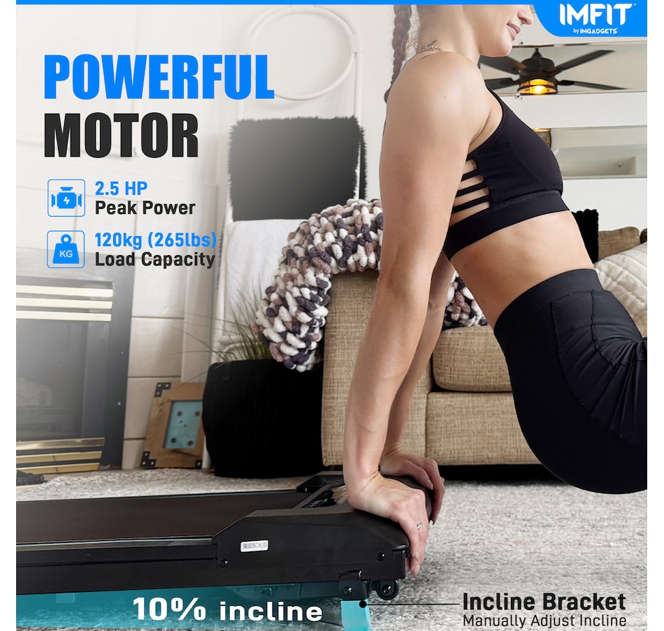 Strong & Sturdy built: This IMFIT compact Treadmill supports up to 265 lbs, offering a stable and secure walking experience. It’s a top choice for users looking for a foldable walking pad treadmill combining strength with everyday convenience.