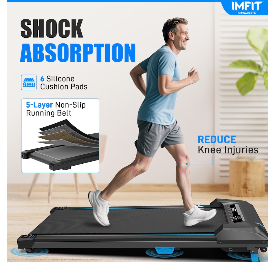 Shock Absorption System: The IMFIT Walking Pad lite Treadmill features a powerful 2.5HP motor designed to deliver a whisper-quiet performance—enabling you to walk or jog indoors without disturbing anyone. With 95% less noise, it's the perfect solution for home or office use, letting you stay active without the hustle and bustle.