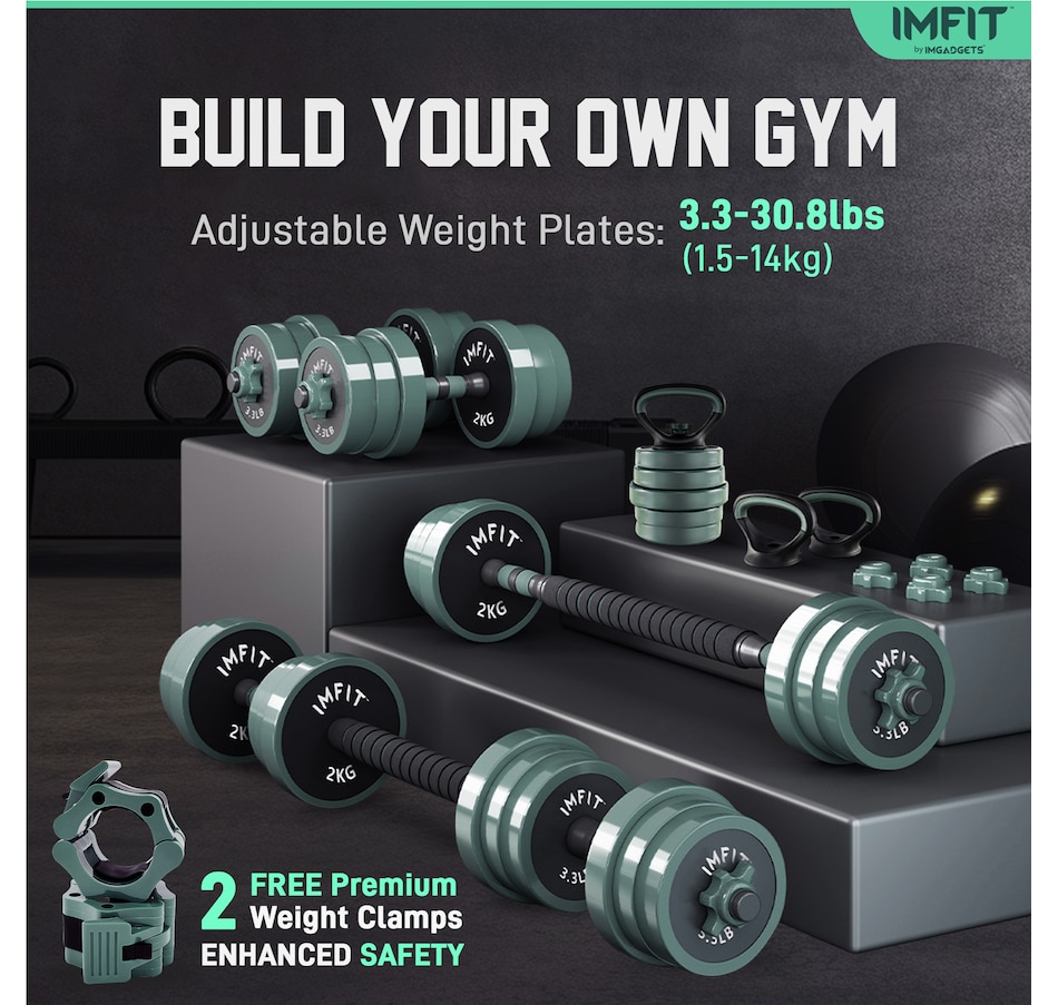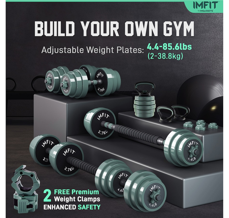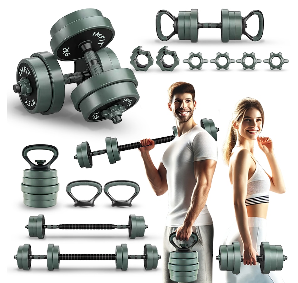Elevate your home fitness game with the IMFIT All-in-One weight Adjustable dumbbells – the ultimate solution for strength training, muscle toning, and full-body workouts. This versatile set combines dumbbells, kettlebells, barbells, push-up stands, and weight plates into one compact, space-saving design, making it perfect for home gyms, outdoor workouts, or on-the-go fitness.