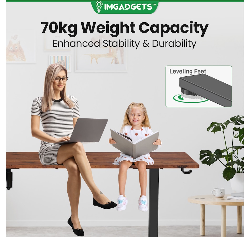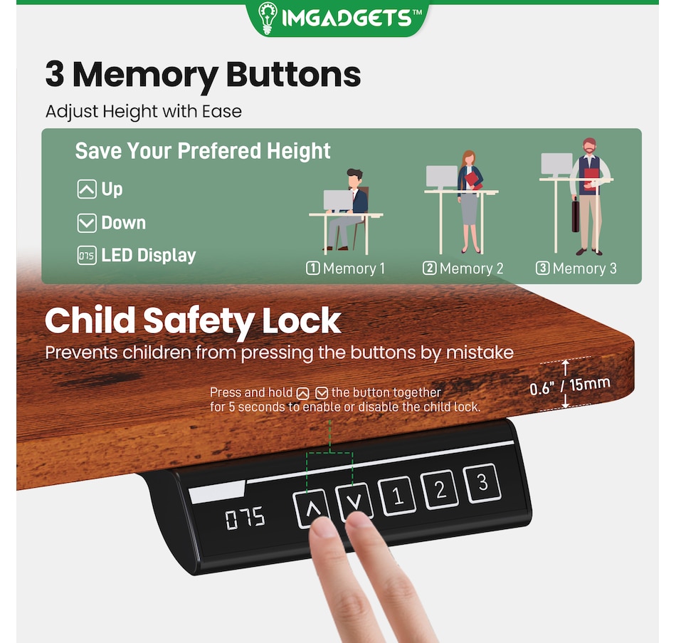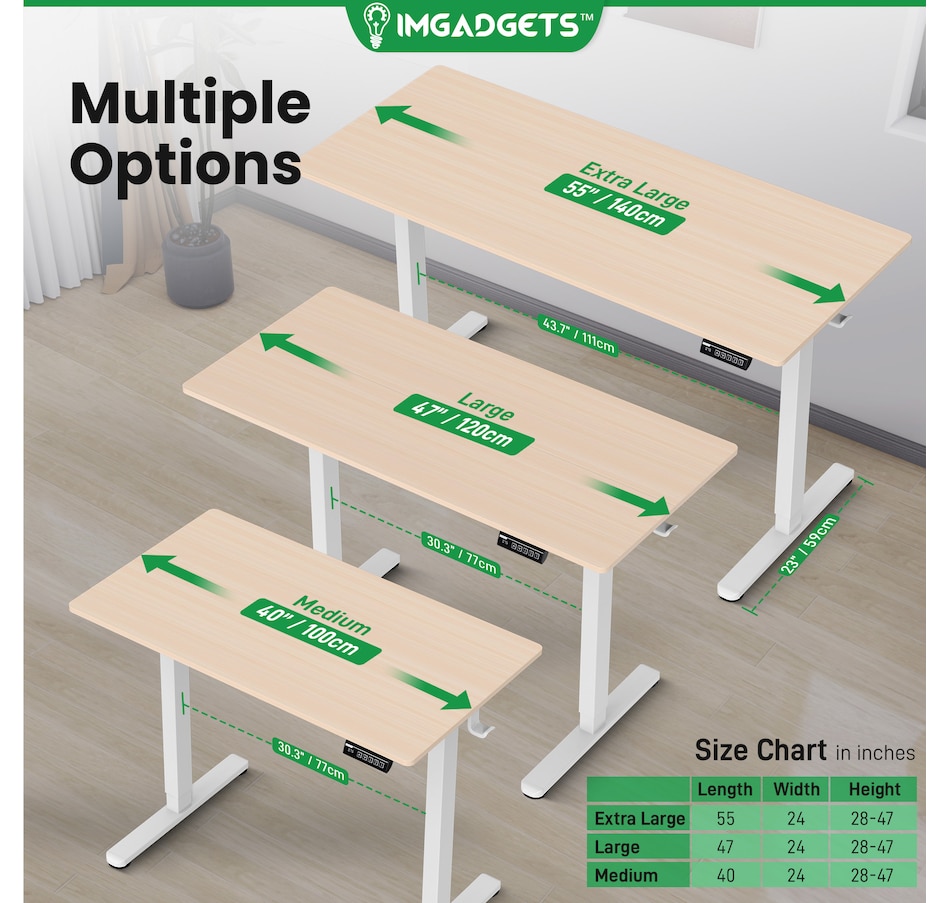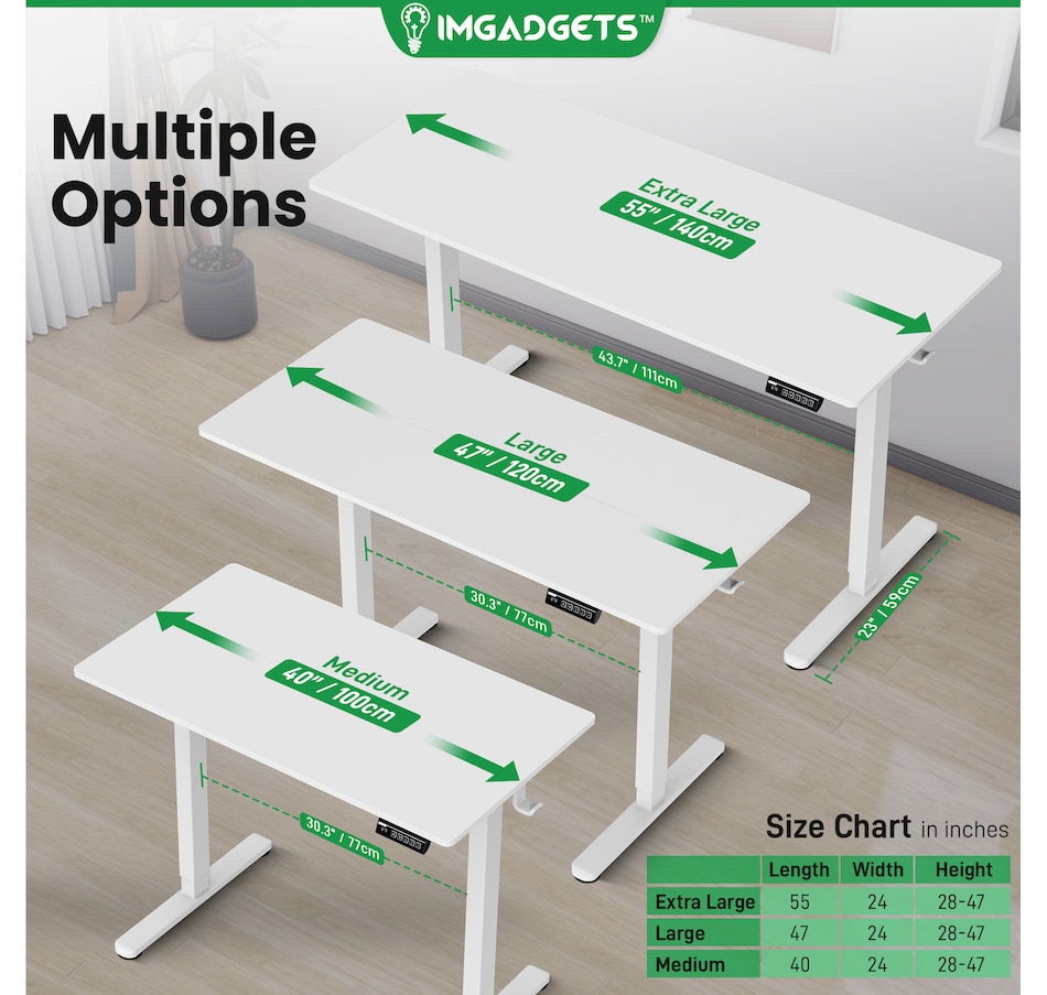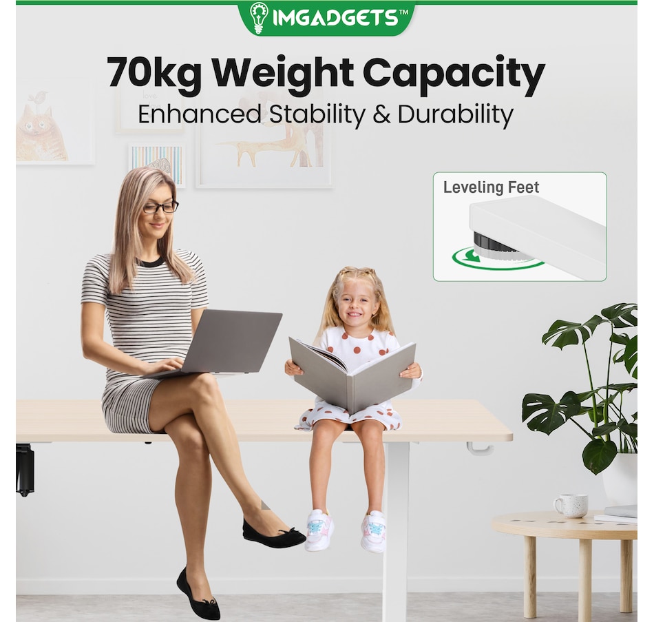 Elevate your workspace with the IMGadgets Electric Standing Desk, a versatile and feature-rich solution for home offices and professional setups. This sit-stand desk offers smooth electric height adjustments from 28" to 47", allowing you to seamlessly switch between sitting and standing. With a built-in 3 memory settings, you can save your favorite height settings for ultimate convenience. The anti-crash design ensures safe height adjustments, preventing damage to objects or the desk itself.