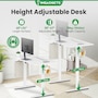 This adjustable standing desk is waterproof, anti-scratch, and equipped with smart holders and desk hooks for accessories, ensuring a neat and organized workspace. Perfect for anyone seeking a premium computer desk table, office desk, or sit-stand desk to boost productivity and comfort.