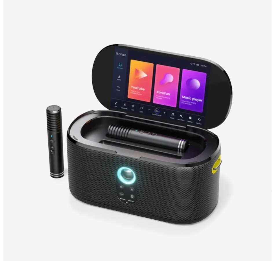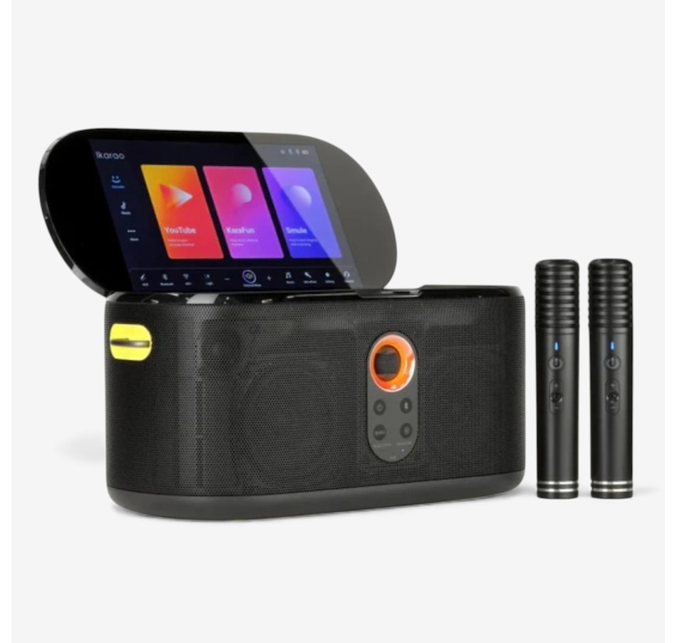 Bring the party home with the Ikarao Shell S1 karaoke machine—a sleek, portable system with 280W of peak power and a 2 2 channel setup that delivers immersive, high-fidelity sound. Whether you're hosting a gathering or performing outdoors, its balanced frequency response (50 Hz to 18 kHz) ensures rich bass and clear vocals, and the 10.1-inch HD touchscreen makes lyric display and navigation effortless. Two wireless microphones offer stable, professional-grade audio with a 10-metre range and 20-hour battery life, and they self-charge for added convenience. Autotune EQ and customizable sound effects let you personalize your performance, while intuitive bass boost and audio controls ensure optimal sound for any occasion. Built-in apps such as Karafun and Spotify let you stream music and access karaoke tracks instantly. With up to nine hours of playtime with the screen on and up to 12 hours with the screen off, plus HDMI connectivity for TV integration, the Shell S1 is built for extended fun. Whether you're singing solo or hosting a karaoke night, this all-in-one system makes every moment more musical, joyful and easy to enjoy!