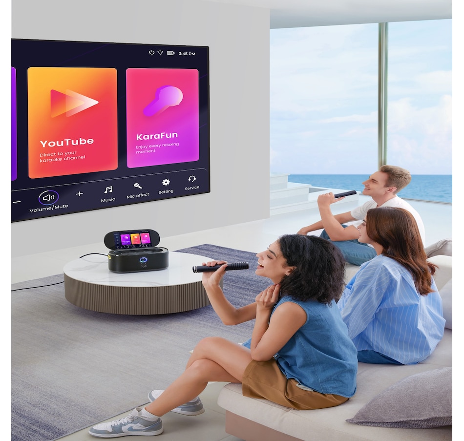 • Comes with popular music apps such as Karafun and Spotify built-in, allowing you to access karaoke songs or stream music easily, making it the perfect companion for any music event