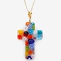 Sterling Silver 18K Multi Colour Murano Cross Pendant with Chain