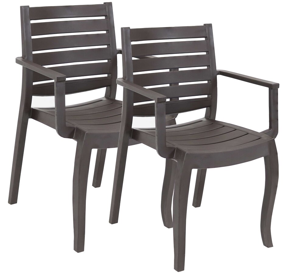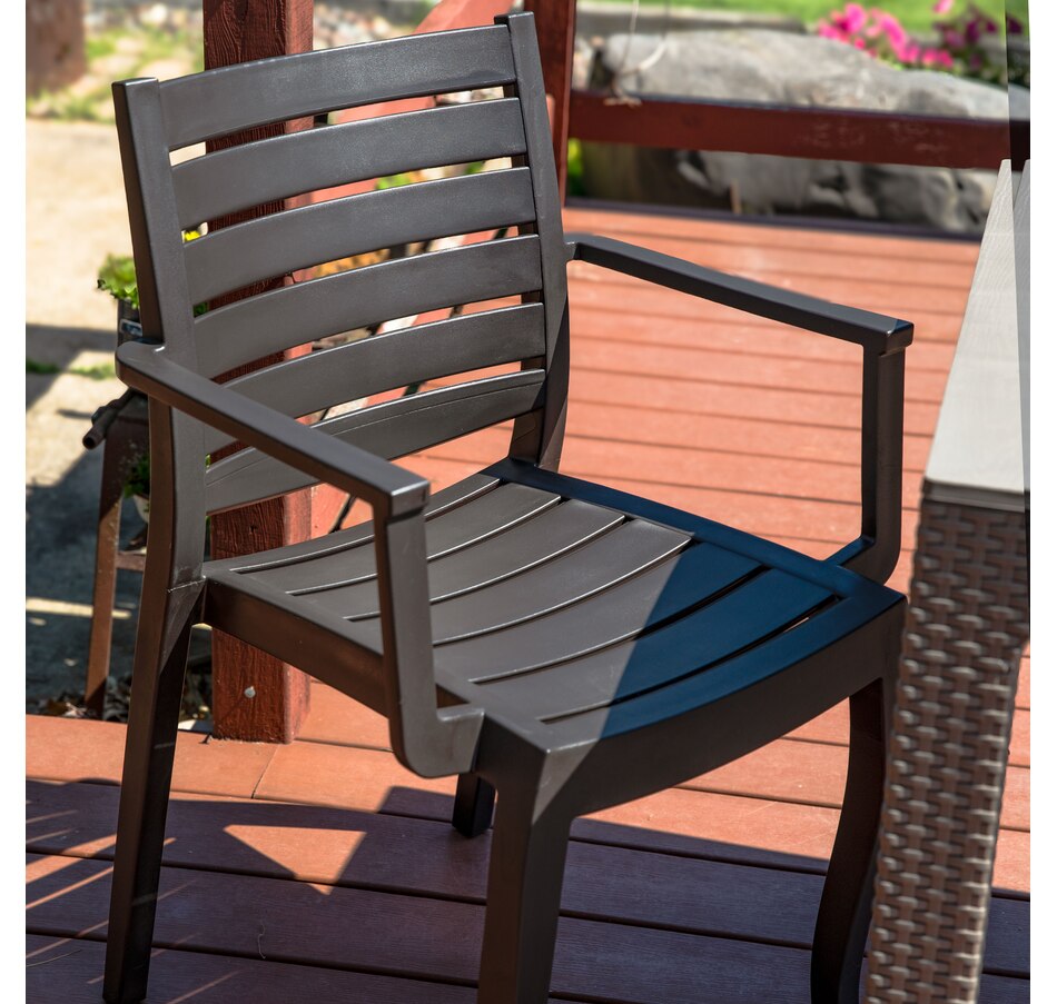 Have a strong and comfortable place to sit out on the patio with friends and family with this set of Illias plastic outdoor patio armchairs. Constructed of durable polypropylene, this weather-resistant chair is designed to withstand the elements outdoors and will make a stylish addition to any outdoor living space that is sure to last for years to come. The plastic material is also easy to clean and maintain compared to traditional materials. These chairs are smooth to the touch and will not crack or break easily! Plus, these chairs are designed to easily stack together for more efficient use of storage space when not in use. These chairs are available in many colors and will look beautiful when placed on the patio, deck, front porch, or out in the yard or garden for an easy and convenient resting spot. Use them in covered porches and sunrooms as well to bring easy relaxation indoors.