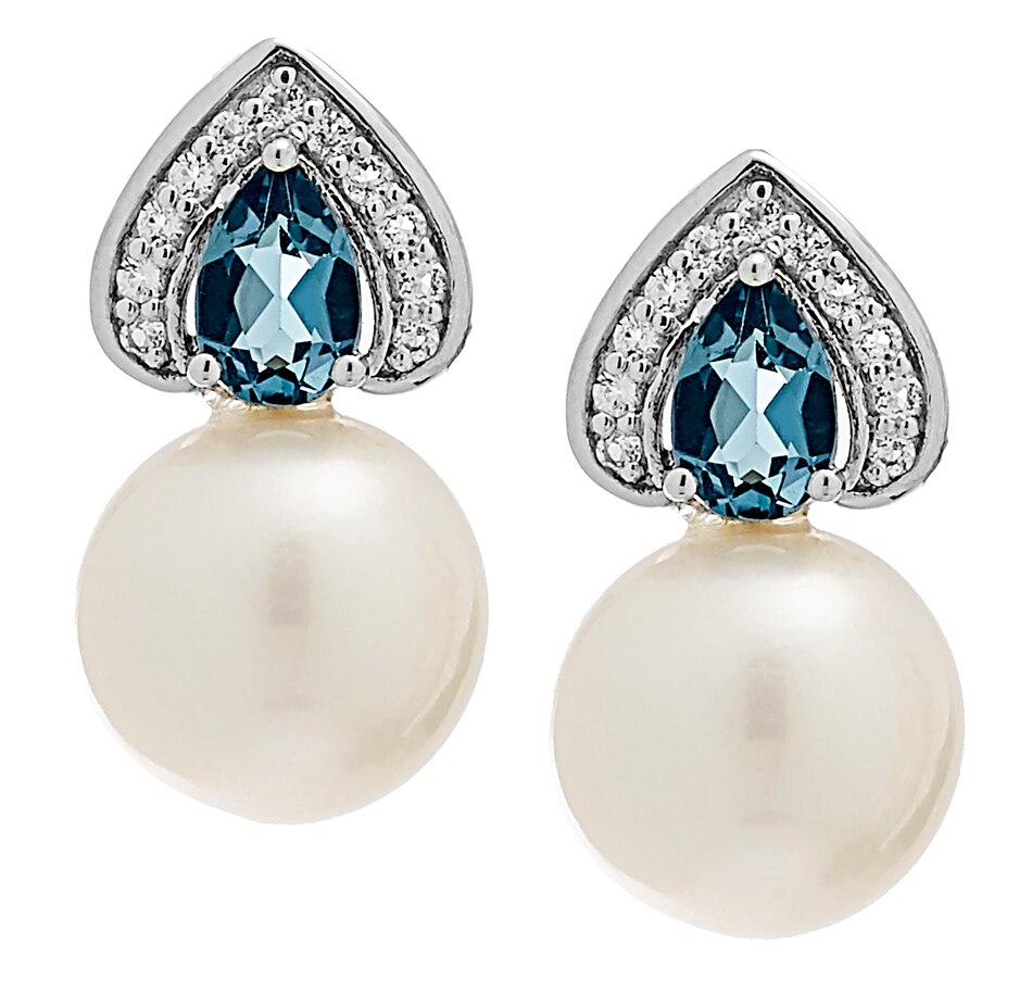 Sterling Silver 10-11mm Freshwater Pearl, London Blue Topaz & White Topaz