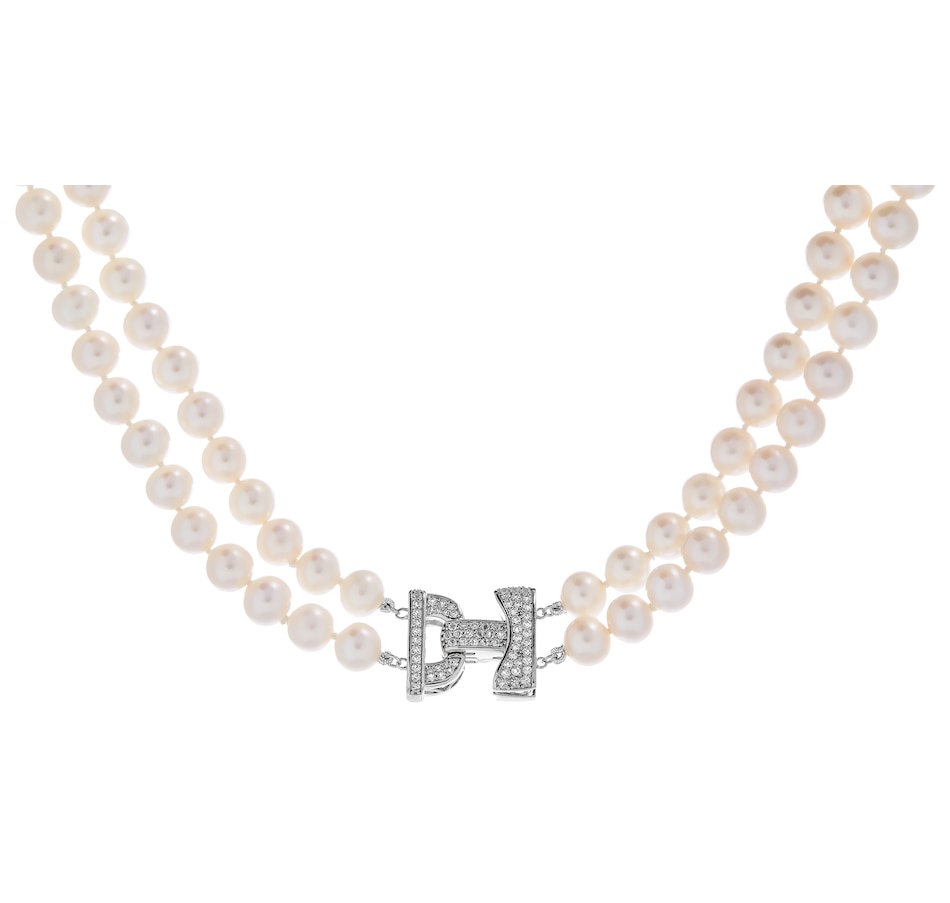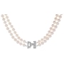 Sterling Silver Freshwater Pearl Double Strand Necklace with White Topaz Clasp