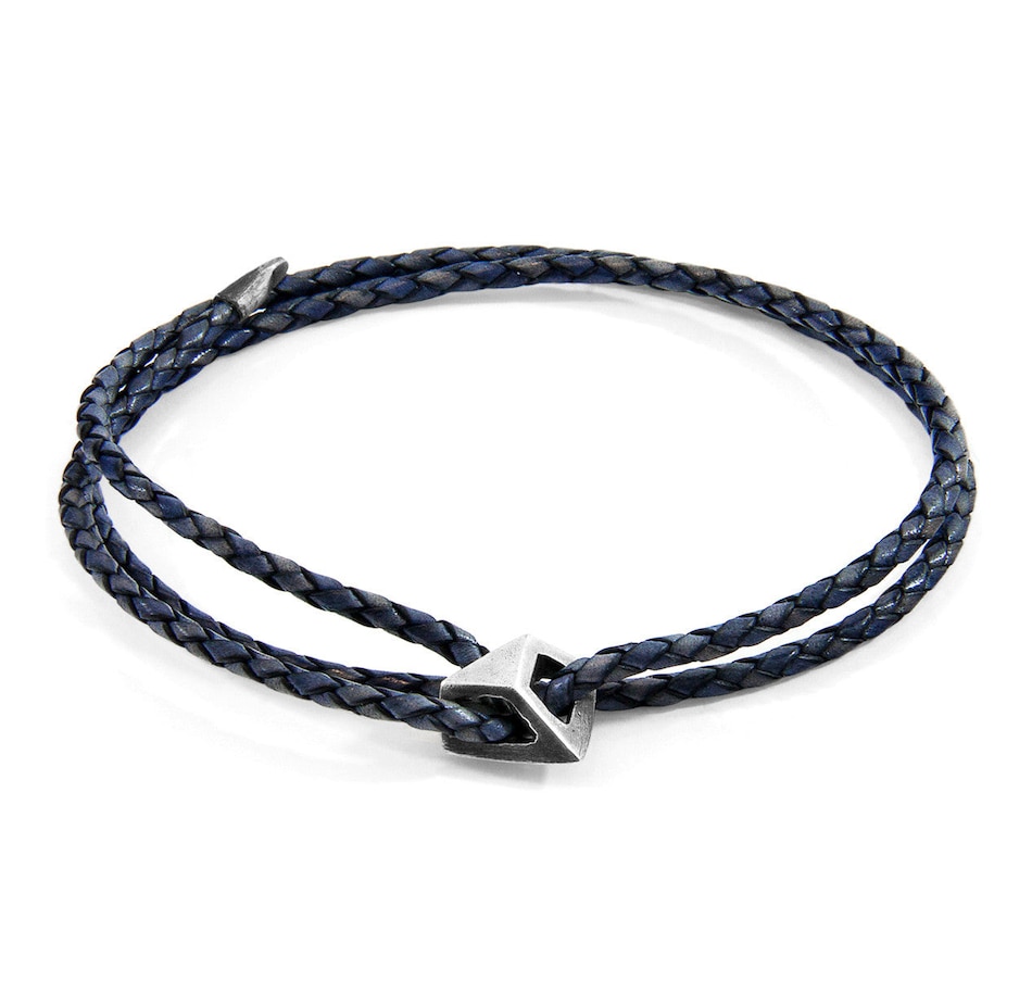 The Indigo Blue Arthur Silver and Braided Leather SKINNY Bracelet was both designed and skilfully handcrafted completely in Great Britain. Combining British craft manufacturing with a discerning modern-minimalist style, this ANCHOR & CREW bracelet features:2.5mm diameter genuine and natural round-shaped braided leather (GB)Secure solid .925 sterling silver mini facetted pyramidal clasp (GB) SIZINGThis bracelet is one size fits all, with the leather able to extend or tighten to suit your wrist size. To take the bracelet on or off your wrist, simply slide the bracelet over your hand after widening the two sides of the bracelet apart and tighten as necessary using the thread-through dangling end. Less is More.