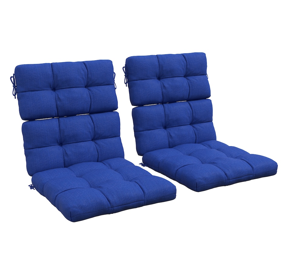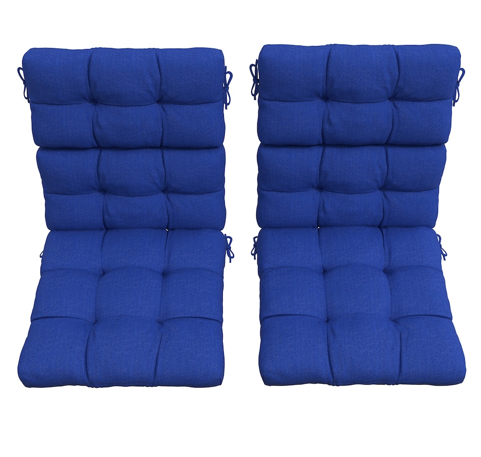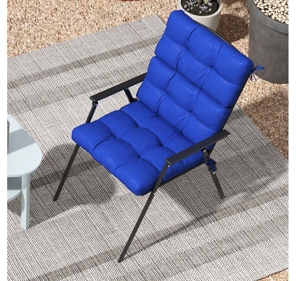 Indoor Outdoor Chair Cushion with Ties, Button Tufted, for Garden, Blue