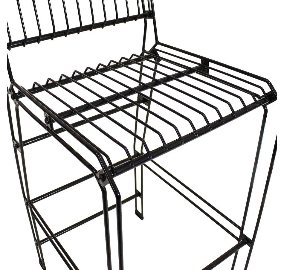 Add a sturdy bar set to any indoor or outdoor space and enjoy the airy design of this bar chair. Place this wire bar stool in any sunroom, patio, basement, or cabin for an efficient and attractive place to sit and drink with loved ones. This chair makes for great extra seating during parties, and its black color is sure to match a variety of locations. Made from durable thermoplastic steel wire with an LDPE clear coating, this armless bar stool is built to last years of use while remaining lightweight and easy to move anywhere. Easily spot clean with soapy water when needed for added longevity. Featuring a backrest for added comfort and plastic feet for stability, this chair will complete any indoor or outdoor living area. All assembly hardware needed to put this black counter stool together is included in the box (please note, a Phillips screwdriver is required to put this chair together but is not included).