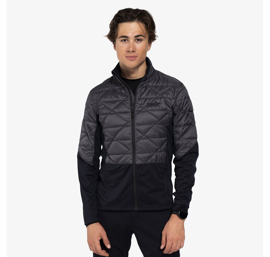 This hybrid jacket is body mapped with insulation in parts where needed the most when being active in cold weather. In other front facing parts it is wind proof while the back section is made with stretch for ease of movement and ventilation. Made with recycled fabrics and filling. This jacket can of course also be worn as a warming midlayer for any occasion when extra warmth is needed. Comes with two hand warmer pockets, cord adjustable bottom hem and partly elasticated sleeve cuffs for instant fit.