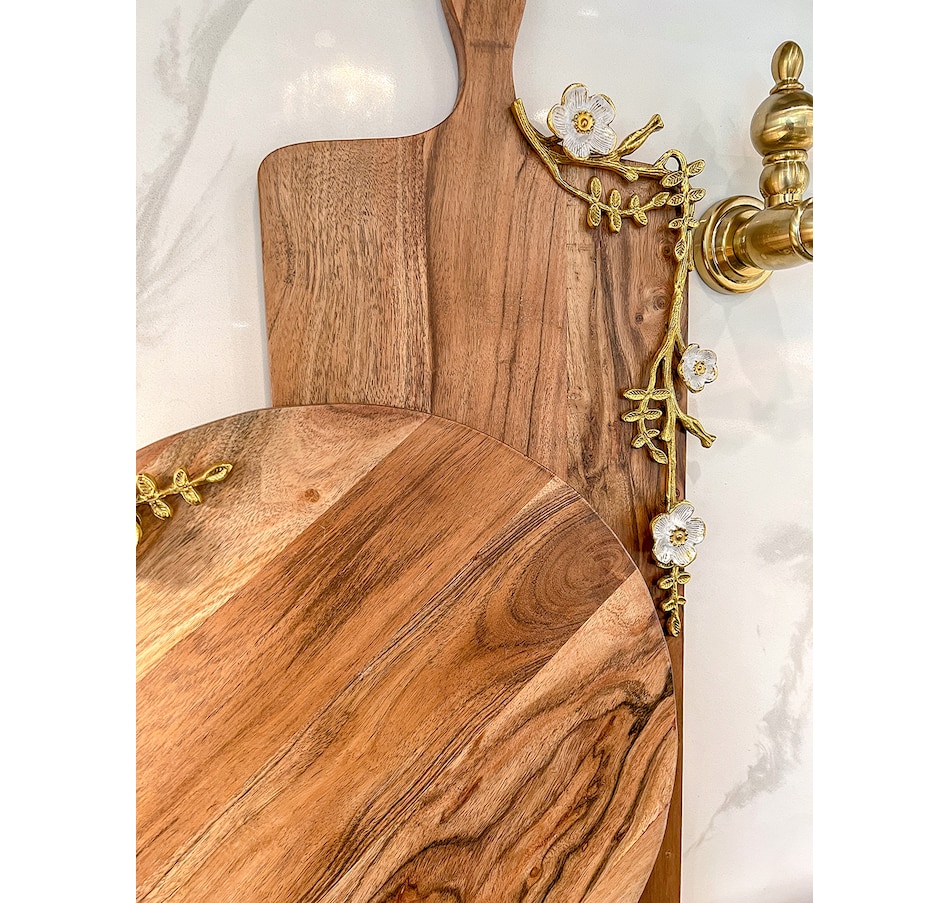 • Inspire Me! Home Décor Large Wood Charcuterie Board with Cherry Blossom Design and Handle