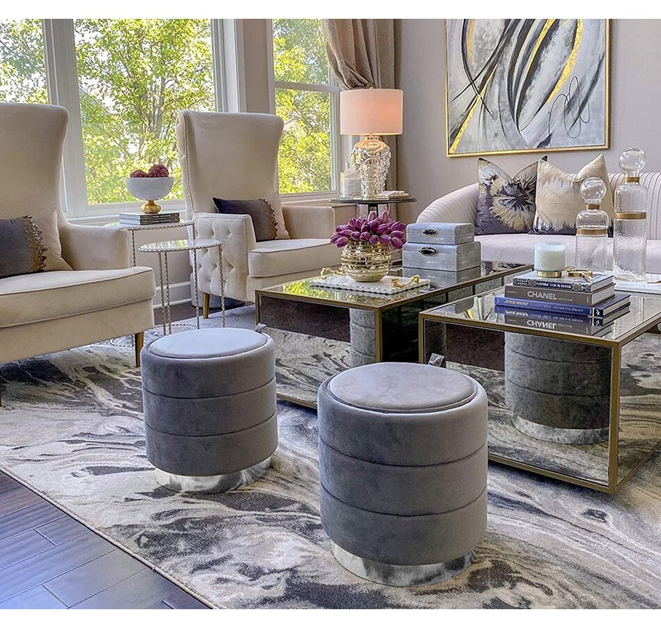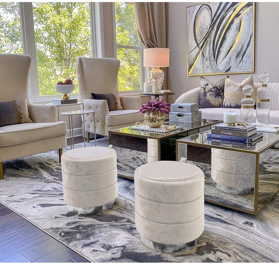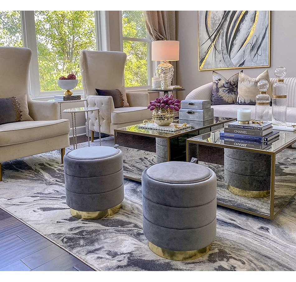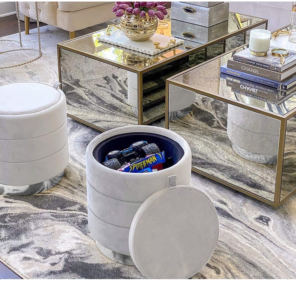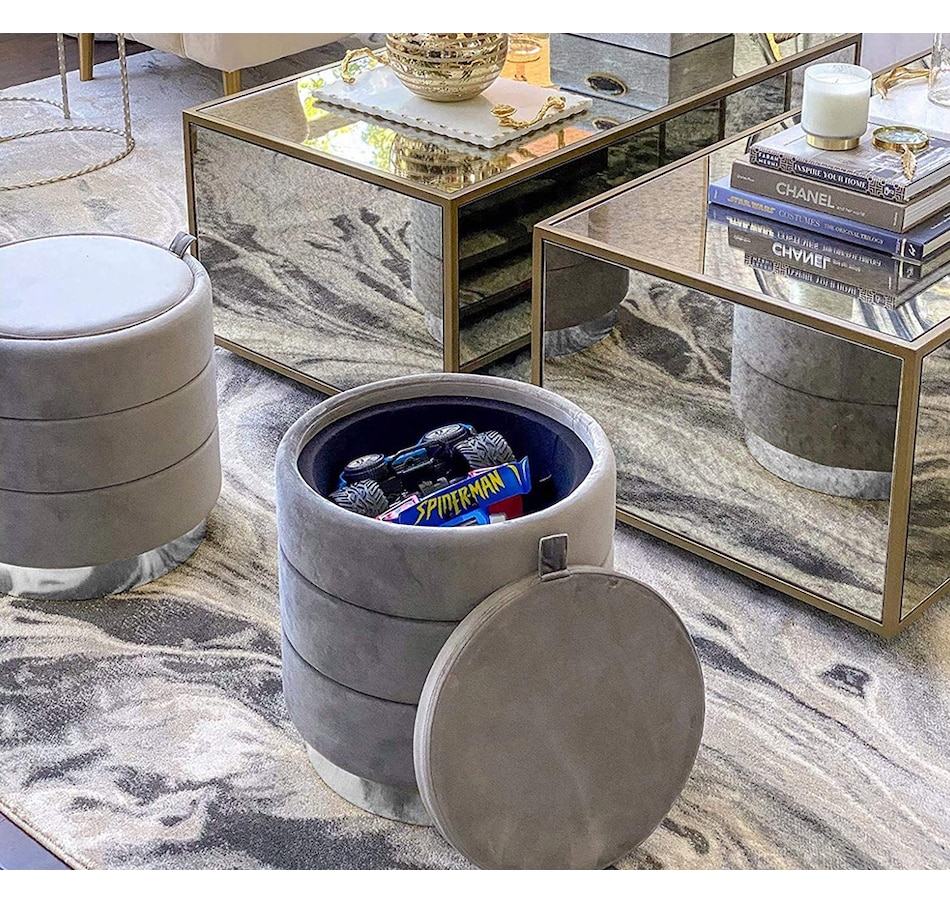 The Inspire Me! home decor Olivia ottoman features velvet upholstery and a beautiful tier panel design. Extremely versatile in its functionality, it provides comfortable seating for your family members and guests, and allows items to be stored neatly inside simultaneously. It provides a good amount of space for hidden storage with its inset lift-off lid, and is great for shoes, small toys, remotes, wires, and so much more. It features a metal base in brushed silver or golden brass, instantly adding a modern and sleek touch to your home. Use it in the entryway to sit down while you slip your shoes on in the morning, place it in your living room for extra seating, or use it in your bedroom as a beautiful accent piece. This ottoman will ship fully assembled, so that you can put it to use right away without worry. It is fantastic for both your own space and also great as a housewarming gift because of its versatility and usefulness.