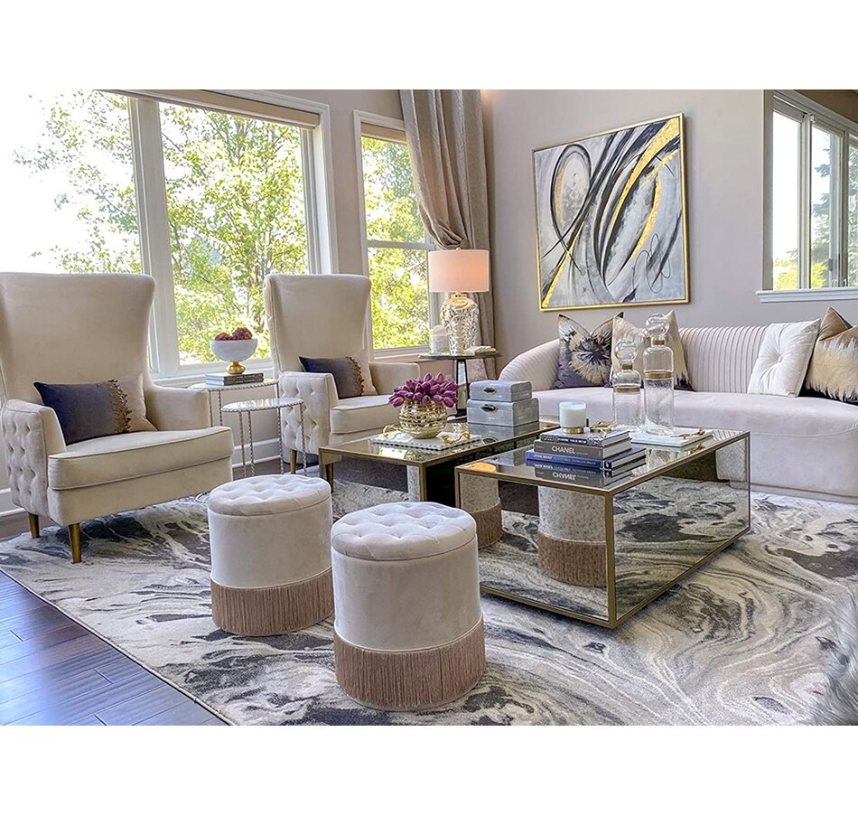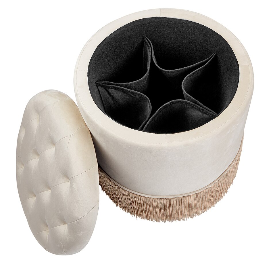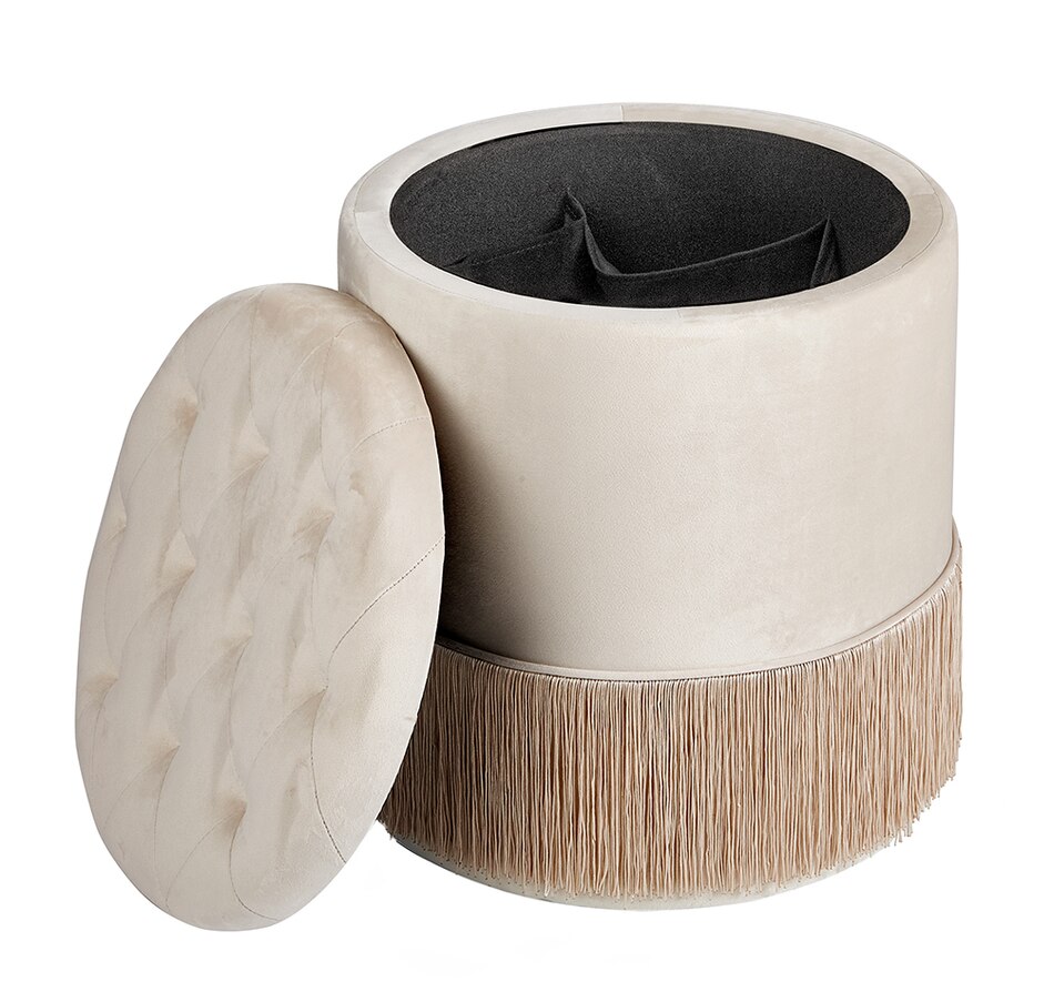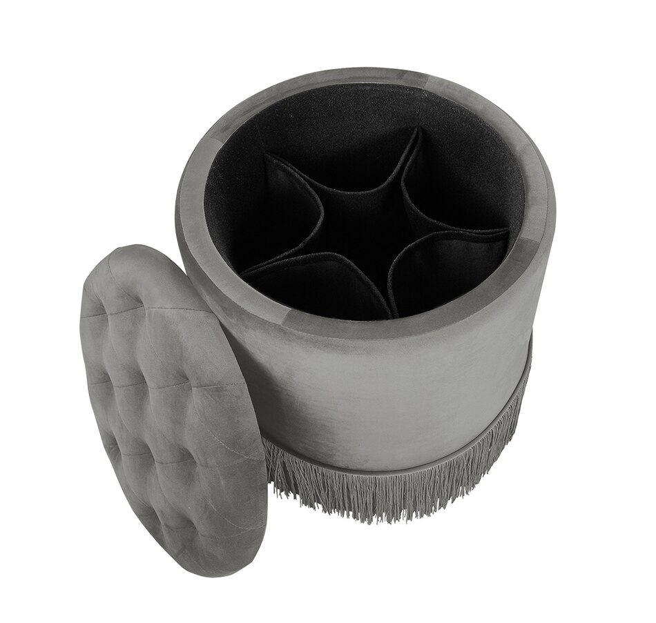 The Inspire Me! Home Decor Serena Ottoman features beautiful soft velvet upholstery and fringe detail. Extremely versatile in its functionality, it provides comfortable seating for your family members and guests and allows you to keep shoes or other items stored neatly inside simultaneously. Thoughtfully designed, it features five pockets and extra room in the very middle for your shoes. However, you can also use these organizers to store remote controls, small toys, wires, and other items. You can use it in the entryway to sit down while you slip your shoes on in the morning, place it in your living room for extra seating, or use it in your bedroom as a classy, boudoir-style accent piece. Furthermore, as it offers hidden storage, you can keep organized and declutter without compromising style. This piece is equally fantastic for your own space or great as a housewarming gift because of its versatility and usefulness.