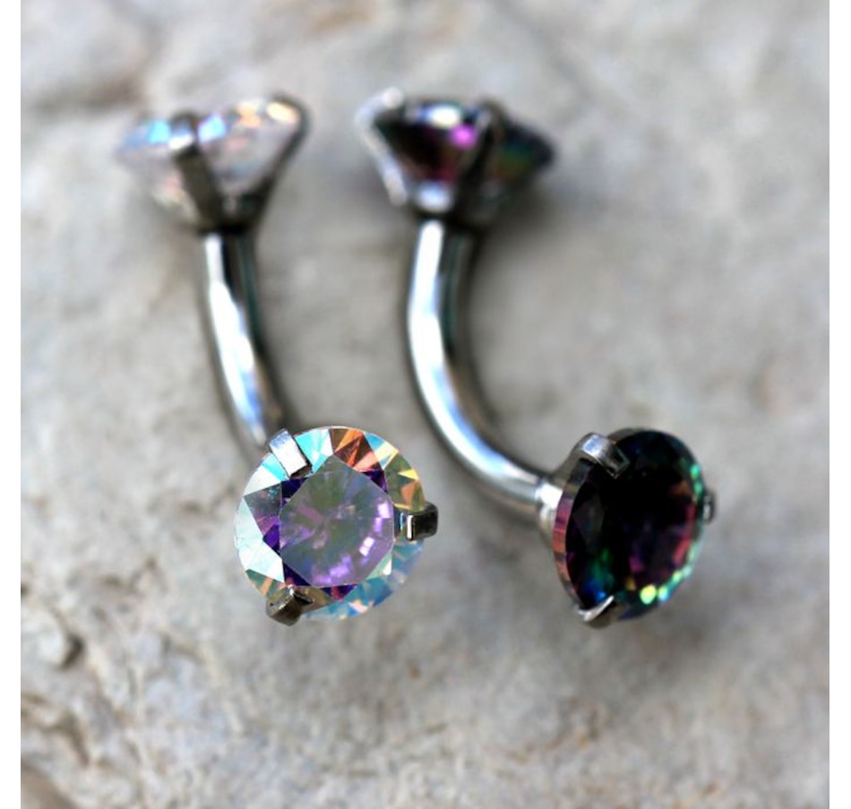 Navel Ring / Belly Button Ring with Two Prong Set CZ‚Petite size navel ring with 5/16" length bar and smaller CZ‚Internally threaded jewelry‚Bar Thickness : 14GA | 1.6mm‚Bar Length : 5/16" | 8mm‚CZ (top & bottom)Size : 5mm‚Thread Type : Internally Threaded‚Material : 316L Stainless Steel, Cubic Zirconia