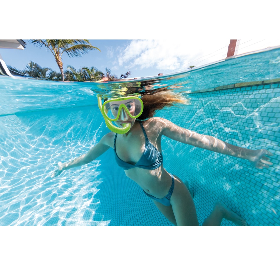 Dive into adventure with the Intex Adventurer swim set Hi-Flow snorkel! Made for for explorers aged 8 and up, this set is designed for fun and safety, thanks to its durable polycarbonate lens that keeps your eyes protected as you explore underwater wonders. Plus, it’s latex-free for extra comfort! Whether you’re discovering colourful fish or just having a blast in the pool, this swim set is your ticket to aquatic fun. So grab your gear, take a deep breath, and let the underwater adventures begin!