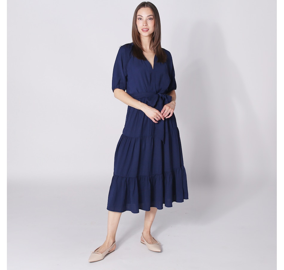 Elevated your spring time look in classic, timeless style with this linen-look belted dress from Isaac Mizrahi.