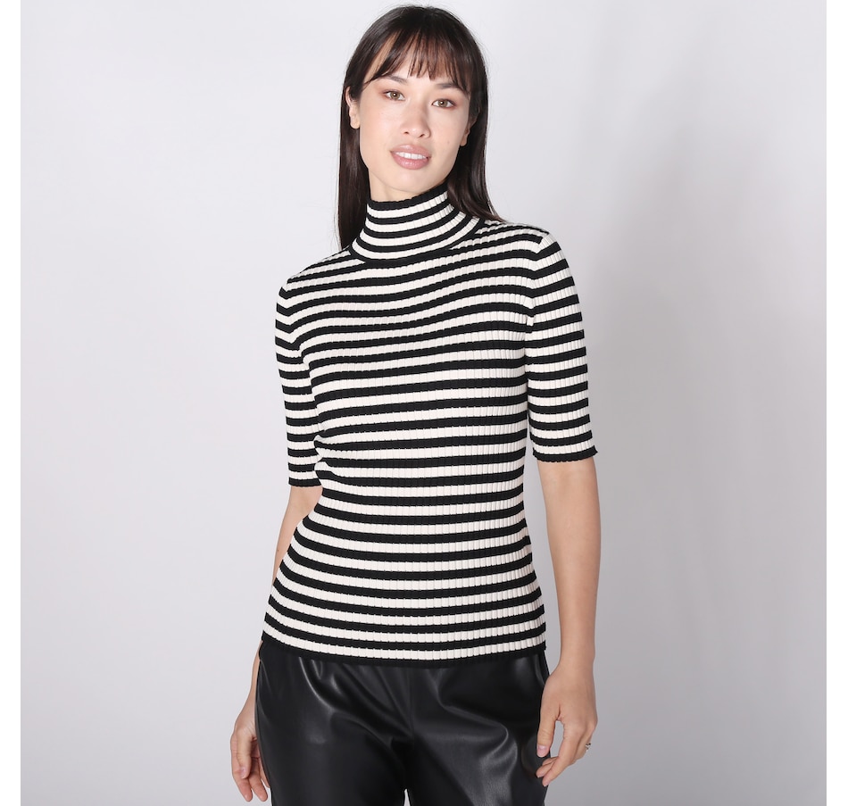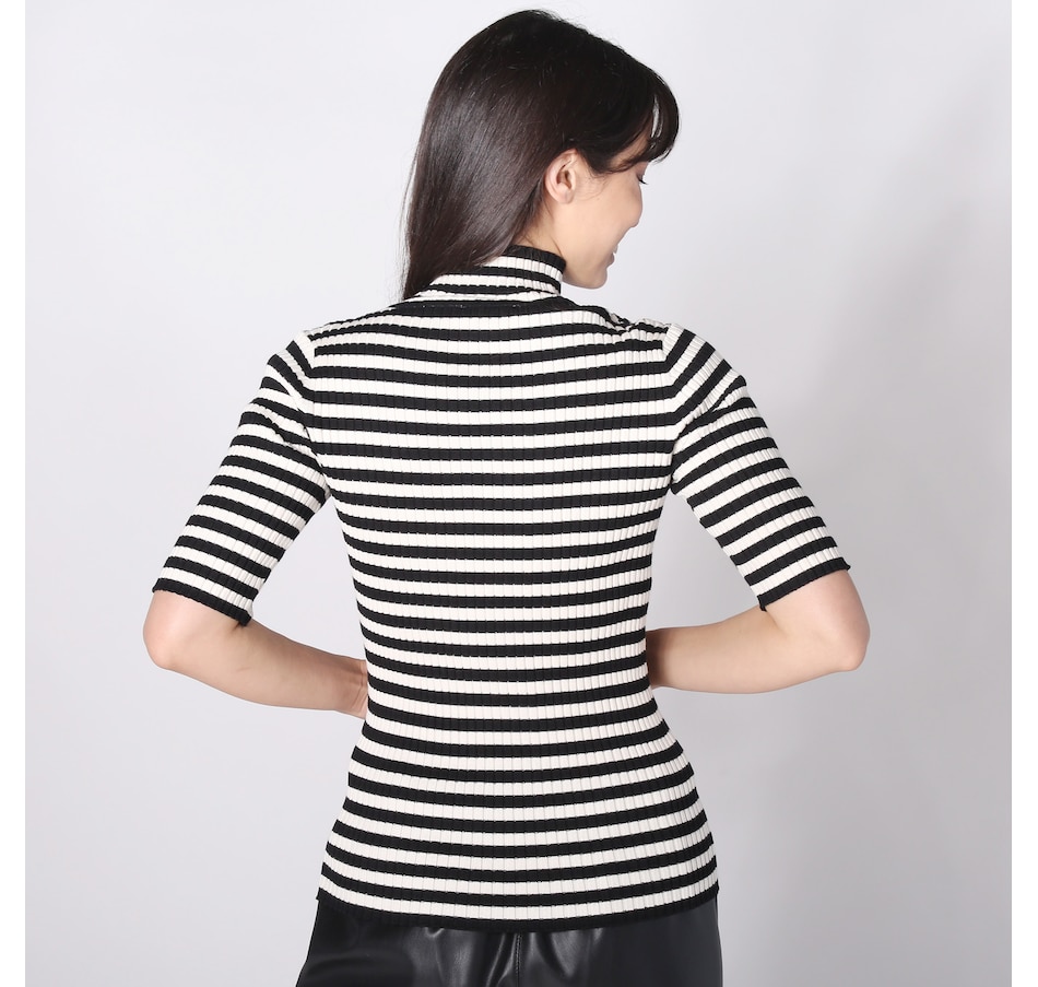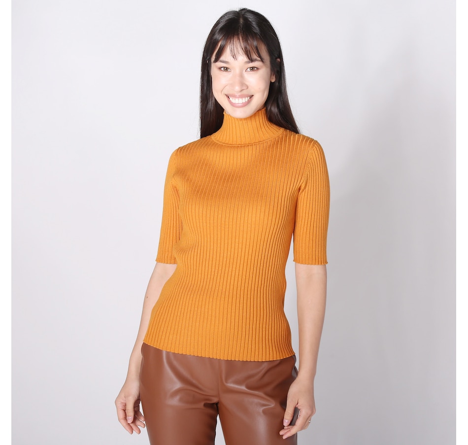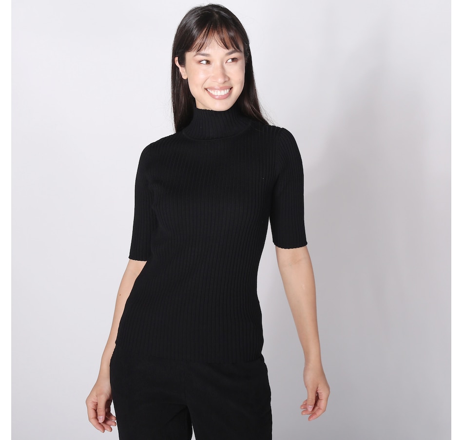 Isaac Mizrahi Mockneck Ribbed Elbow Sleeve Top