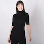 You'll finish your look in elevated style with this versatile mockneck ribbed elbow sleeve top from Isaac Mizrahi.