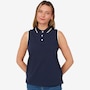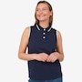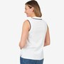 • Semi-fitted, sleeveless, collar, three-button front