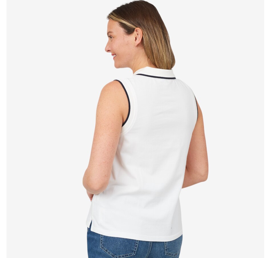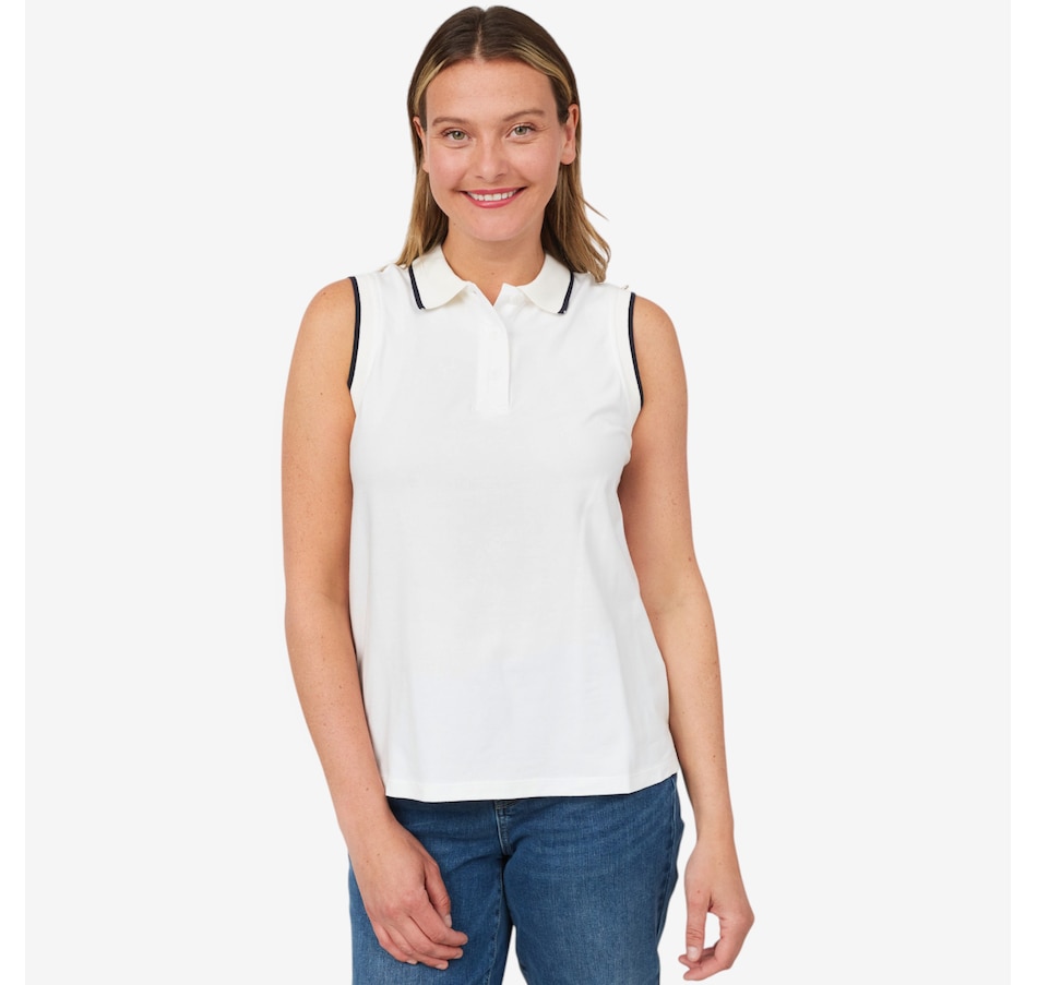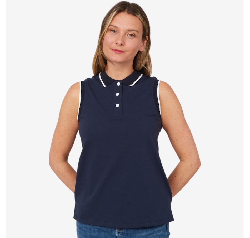 Classic and versatile, you'll centre your summer look in timeless style with this polo top from Isaac Mizrahi.