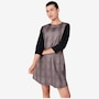 This ponte knit swing dress from Isaac Mizrahi features a classic rounded neckline. It is available in two fabulous versions to centre all your fall looks in vibrant style. It is relaxed, flares from the bust/waist downward (it is not fitted through the skirt) so that it swings and moves freely. The main body is made of ponte knit, which is a structured yet stretchy knit fabric that gives the dress a smooth drape, some slight stretch for comfort, and enough body so the dress holds shape without clinging. The sleeves are faux suede, adding a texture contrast and a more luxurious vibe on the arms.