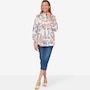 Vibrant and fun, you'll centre your look in eye-catching style with this printed button down shirt from Isaac Mizrahi.