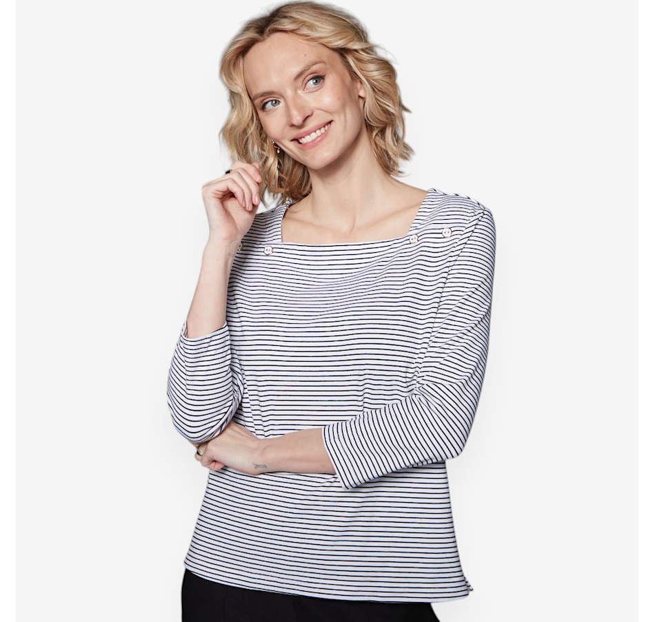 A versatile and comfortable piece available in a trio of great colours, you're going to love the look and feel of this square neck knit top from Isaac Mizrahi.
