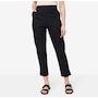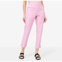 • Fitted, pull-on, side slits at ankles, elastic waistband, high rise, slash front pockets