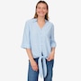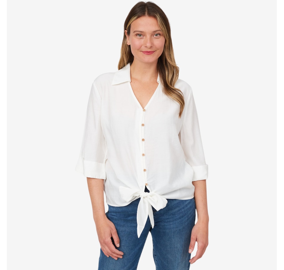 Classic and fun, you'll centre your warm weather look in timeless style with this tie front blouse from Isaac Mizrahi.