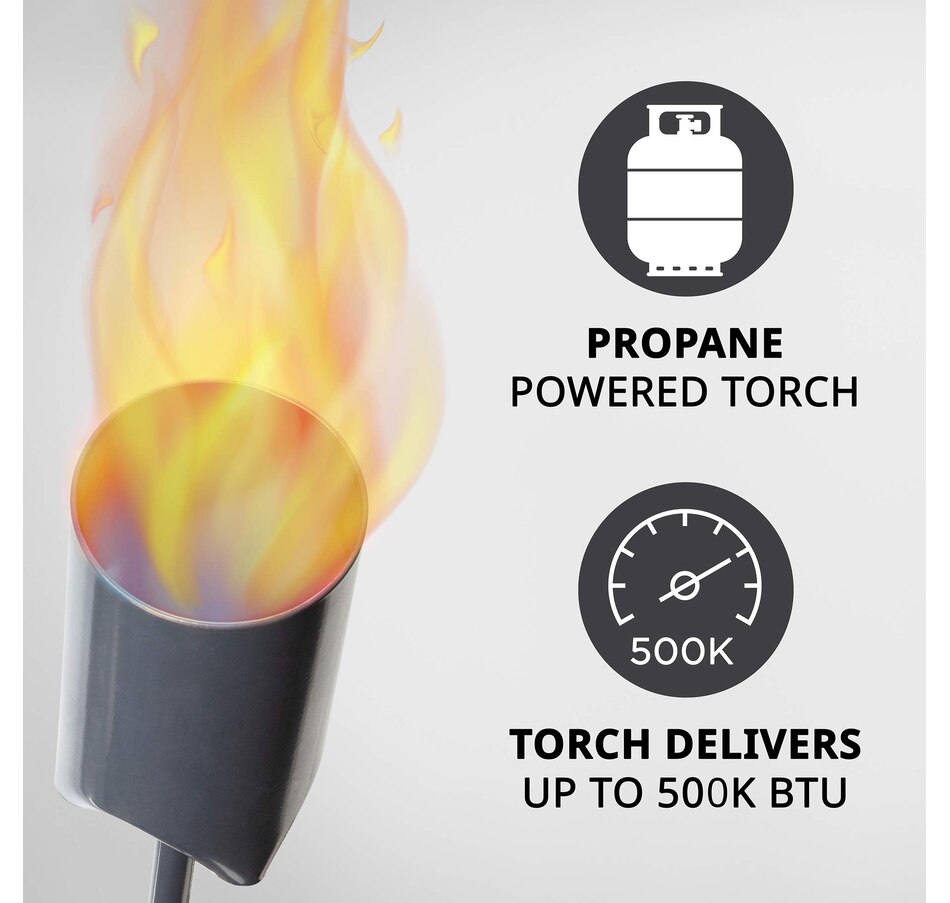 - Propane lighter torch delivers up to 500,000 BTUs for a variety of high-heat applications