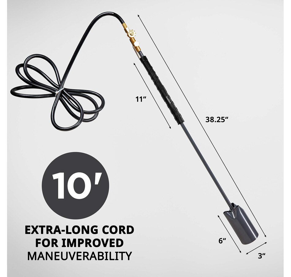 Heat things up with the Ivation Propane Torch Head with 10 10-foot hose. Get a variety of home improvement jobs done around your house with this powerful small torch. This weed burner torch is so easy to use that you’ll be burning away weeds, welding pipes, melting snow, and so much more in no time. The Ivation propane flame thrower fire gun torch’s impressive 500,000 BTU output provides the fiery power you need to get the job done. When you’re not roasting chickweed, clover, poison ivy, and crabgrass, the tool is great for camping, roofing, roadwork, and more.