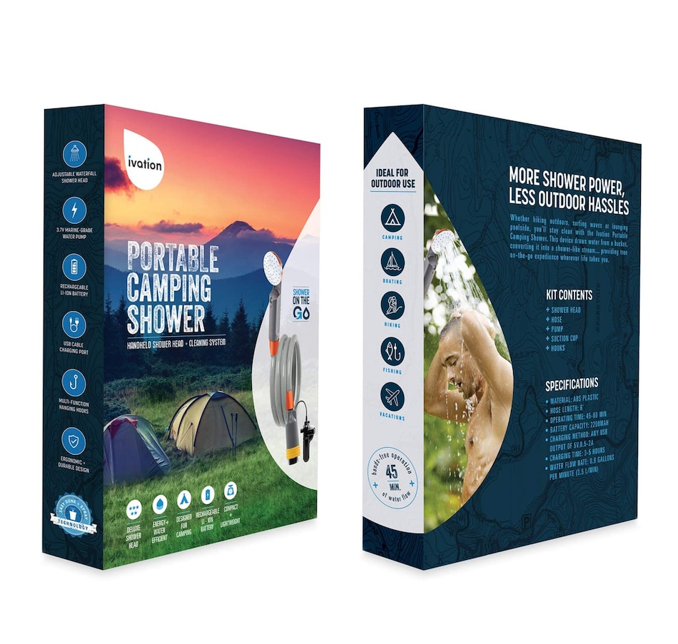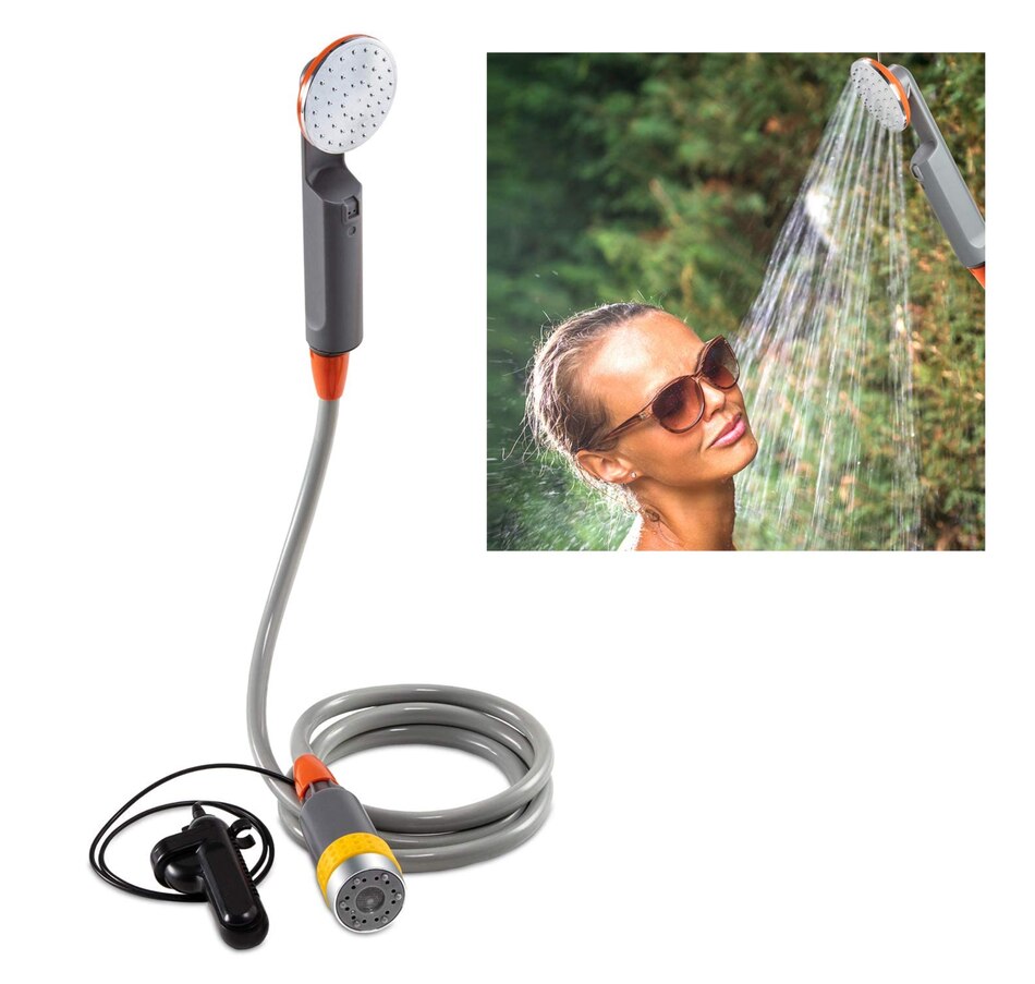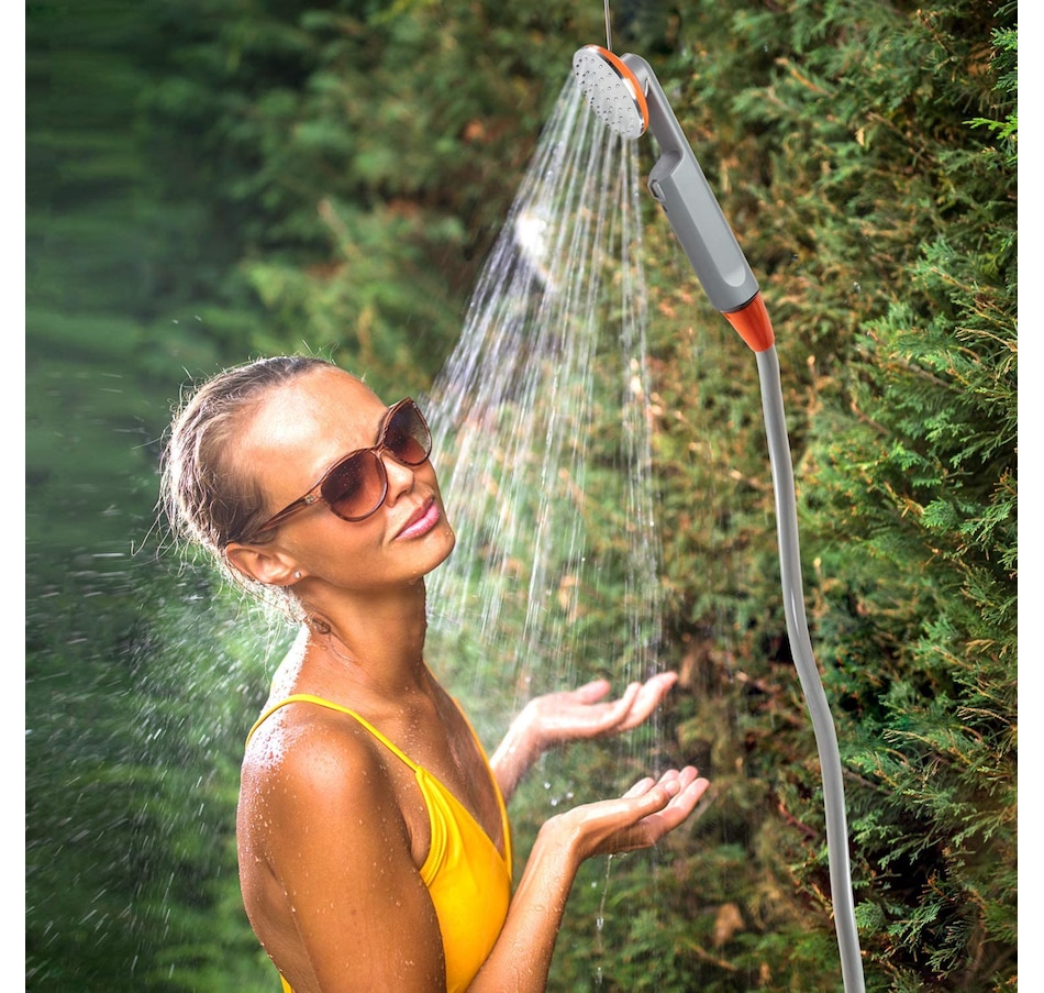 Whether you’re in search of an on-the-go shower, pet-friendly sprayer, or all-purpose washer, the Portable Shower Head with Water Pump from Ivation provides a steady stream of H2O convenience. Featuring a 3.7-volt water pump, 6-foot hose, multiple shower heads, and a removable filter for effortless maintenance, this multipurpose portable shower for camping makes it easy to stay clean while freeing up storage while you’re camping, hiking, boating and more.