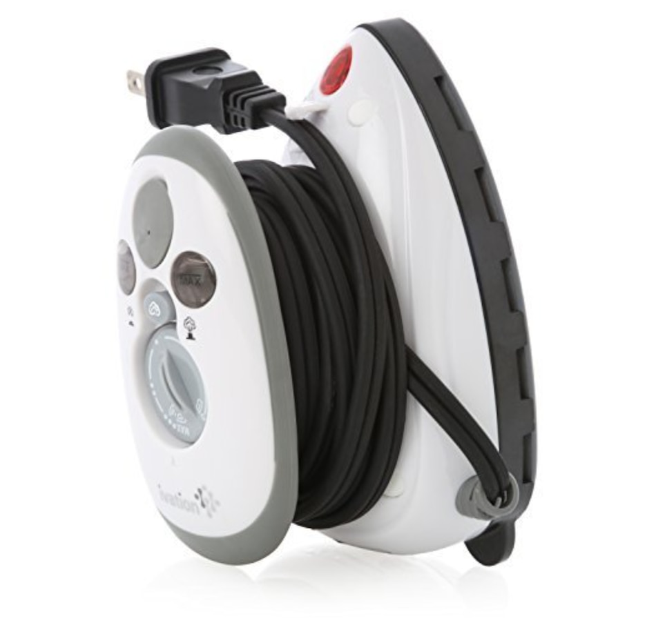 - This small iron features an extra-long power cord (7.5 feet) that wraps & clips around the handle