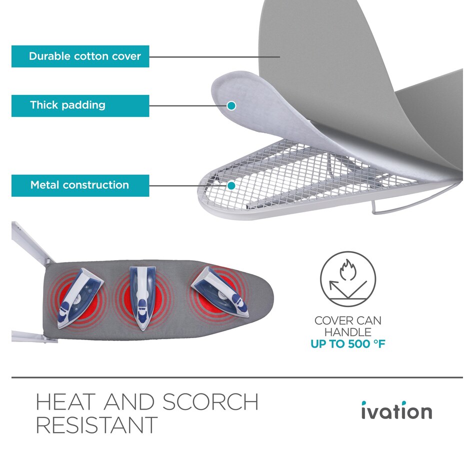 Cleaning is easy with the removable ironing board cover. Start enjoying ironing again with the Ivation Wall-Mounted Ironing Board with Removable Cover.