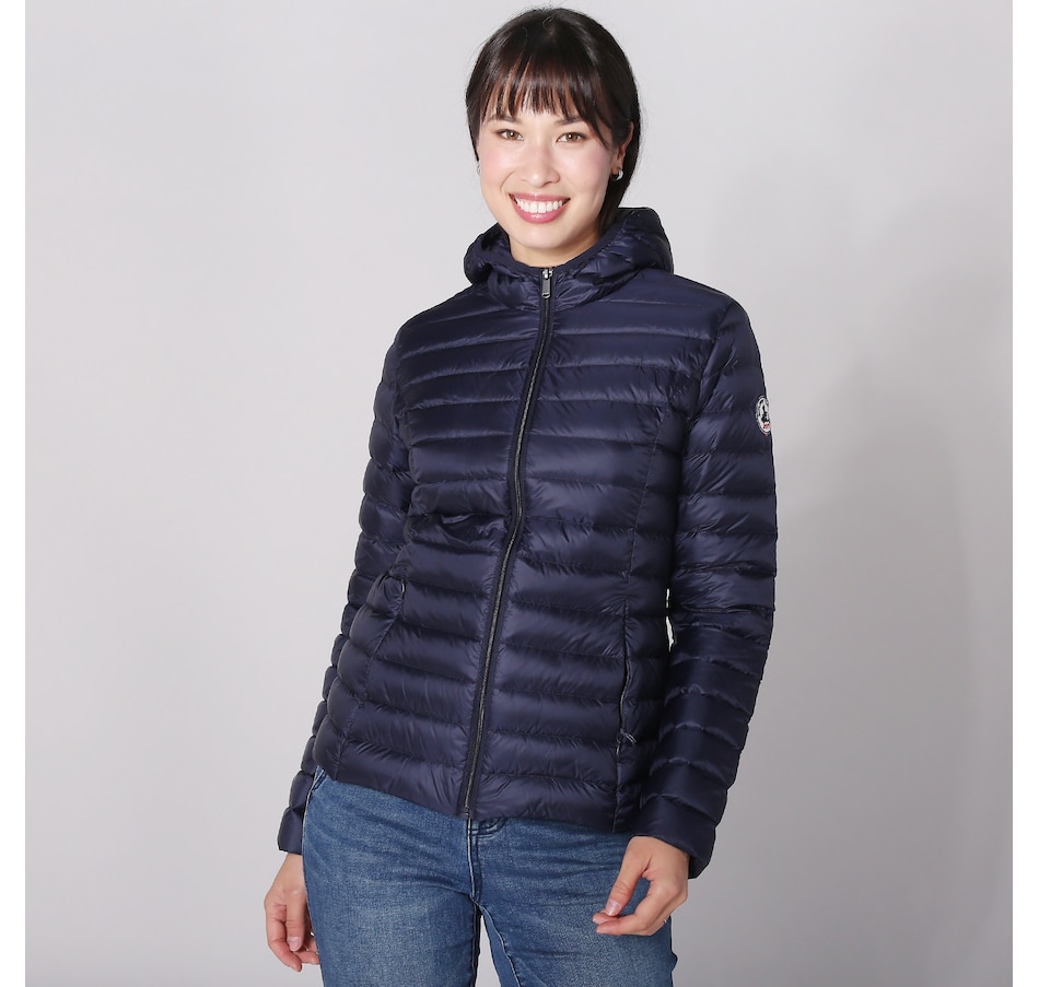The Cloe down jacket from JOTT is an iconic hooded model. You'll love its fitted feminine line, its invisible zipped side pockets, the water-repellent fabric and a light but very warm feather and down padding.