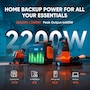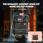 - 2042Wh capacity and 2200W output, powering over 1 day of emergency needs. The smallest, lightest home backup power: 40% smaller, 34% lighter at just 17.9kg.