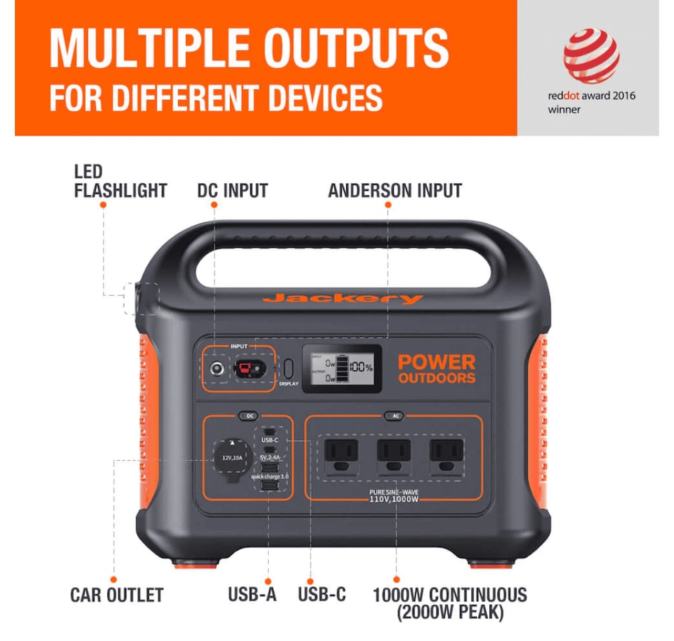 - Jackery Explorer 880 Portable Power Station, 880Wh Capacity with 3x1000W AC Outlets, Solar Generator for Home Backup, Emergency, Outdoor Camping
