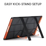 - EASY SETUP & KICKSTAND INCLUDED: The new Solar Saga 100W Bifacial solar panel features 2 kickstands that can be placed firmly on any surface ground. With just a few seconds of setup, you can start soaking energy from the sun for your Jackery power station. With a new handle shape change, it allows you to carry around easily when taking adventuring. The new output port is not in the handle.