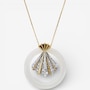 Refined brilliance meets serene beauty with this 14K yellow gold rhodium natural white nephrite jade and diamond necklace from Jade of Yesteryear. At the heart of the design is a luminous circular disc of genuine natural white nephrite jade, expertly channel‑set and totaling an impressive 9.15 carats. Framed within the jade, 31 pavé‑set, faceted diamonds add a radiant sparkle. The pendant measures approximately 1" top to bottom and is suspended from a sleek chain measuring 15.25" with a 2" extension, allowing for versatile, collarbone‑skimming elegance. Finished with a secure spring‑ring clasp, this necklace is a sophisticated statement piece, perfect for elevating everyday style or adding meaningful luxury to special occasions.