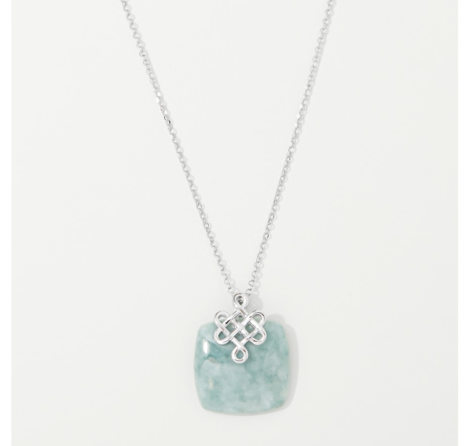 Sterling Silver Genuine Green Jade Cushion Shape Necklace