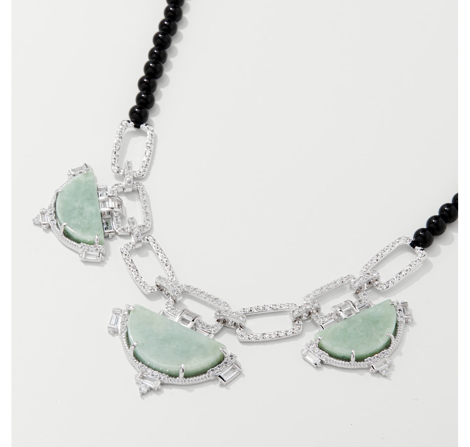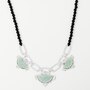 Sterling Silver Genuine Green Jade and Black Agate with Created Sapphire Necklace