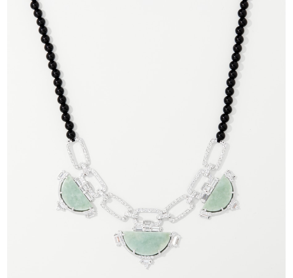 Find the perfect accessory to complement your ensemble when you wear this stunning piece from Jade of Yesteryear!