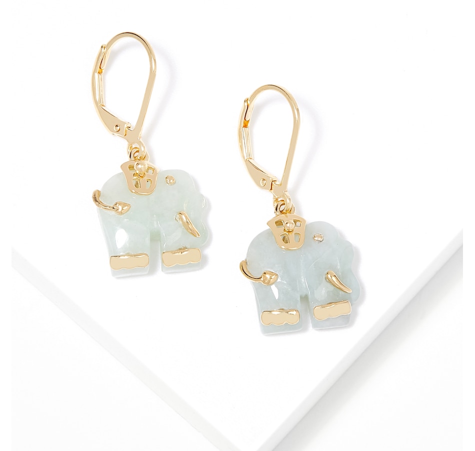 Sterling Silver Gold Plated Green Jade Elephant Earrings