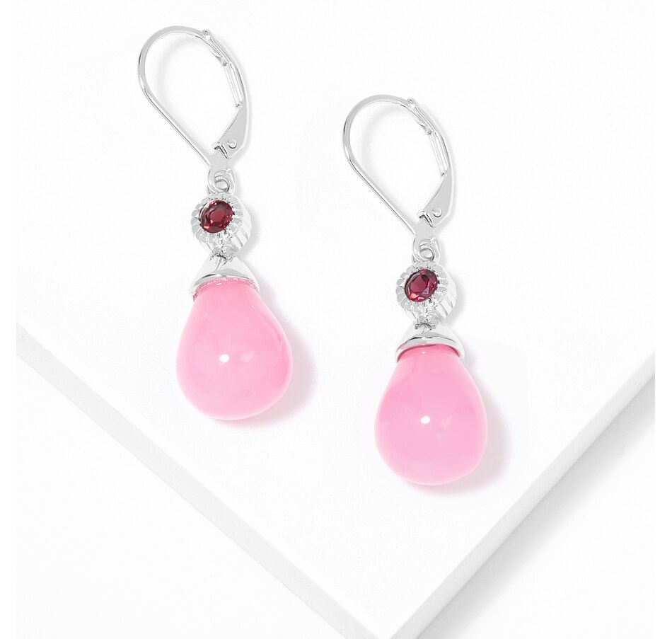 • (2) 12 x 10mm pear shape Dyed Pink Jade (21.90 av.ctw)