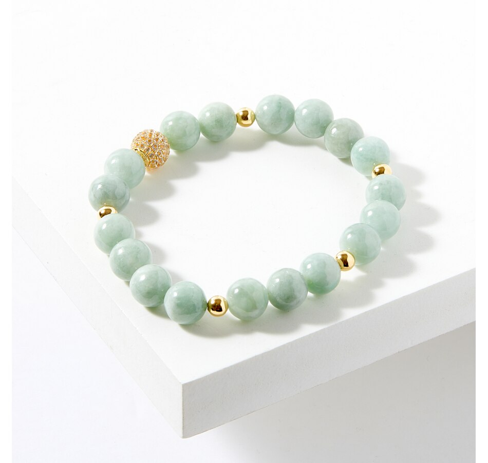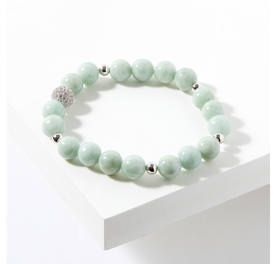 Sterling Silver Jade & White Topaz Stretch Bracelet
