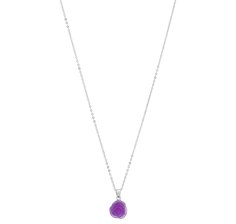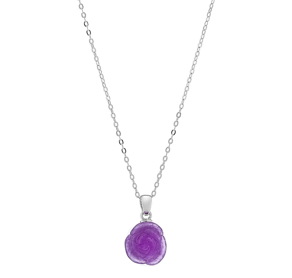 Sterling Silver Lavender Jade Rose Pendant with Chain
