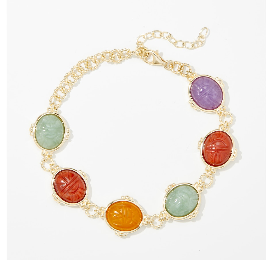 Sterling Silver Multi Colour Jade Station Bracelet