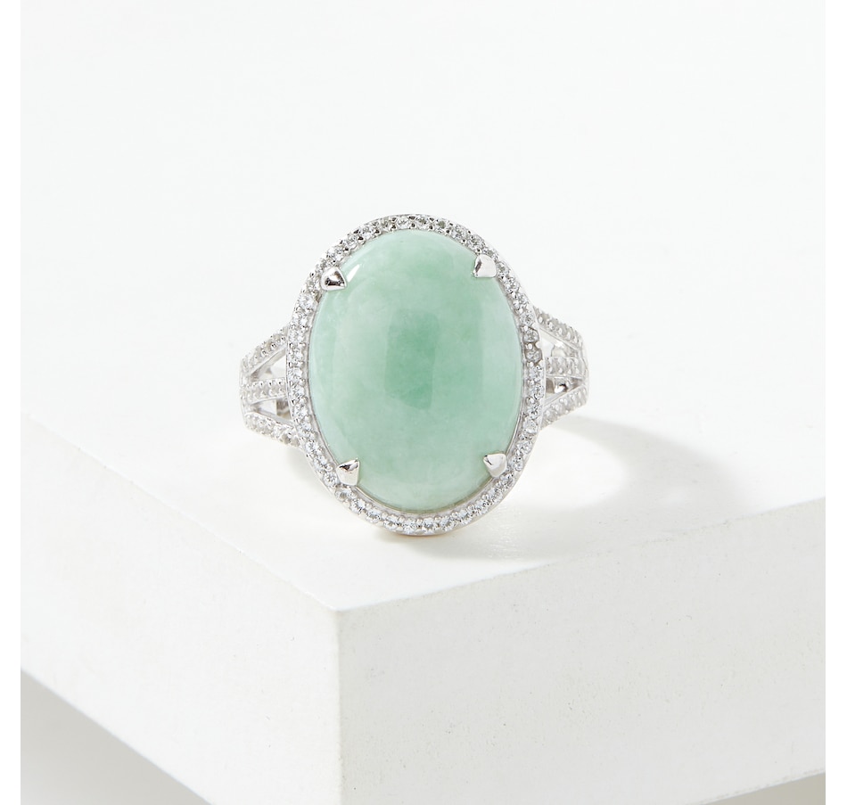 Sterling Silver Oval Green Jade Halo Ring