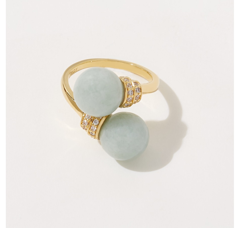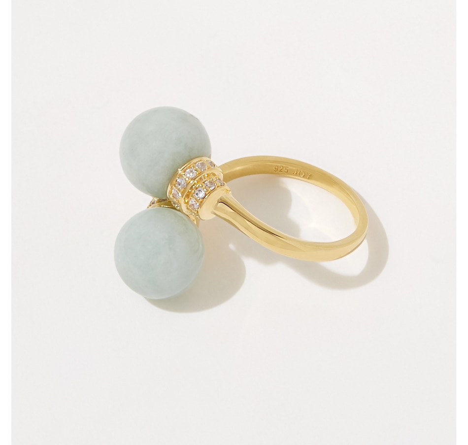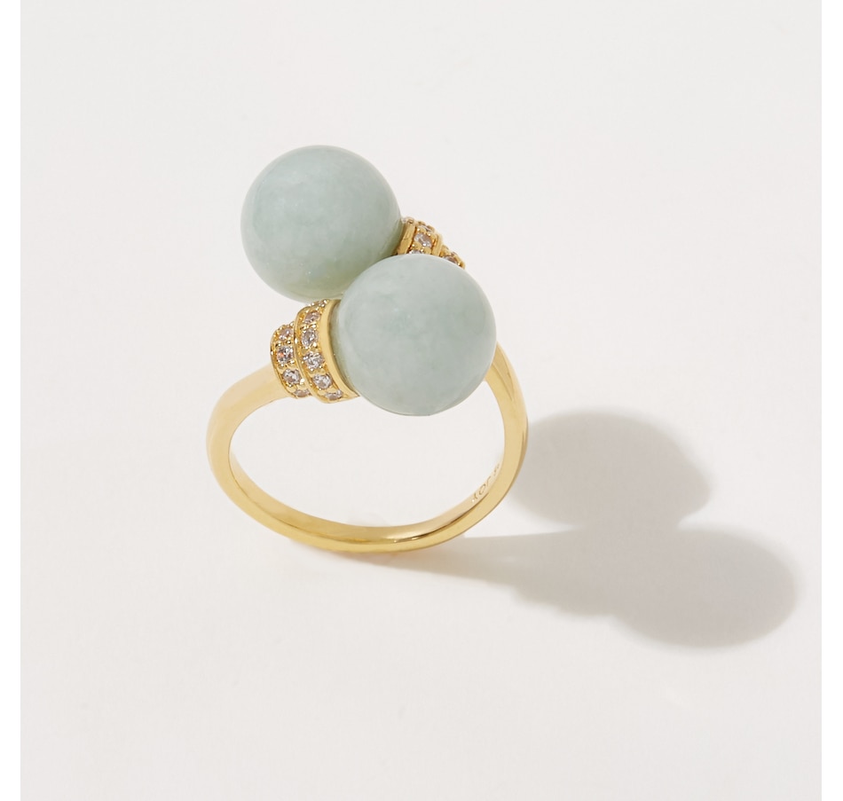 Sterling Silver Yellow Gold Plate 10mm Genuine Green Jade Bypass Ring